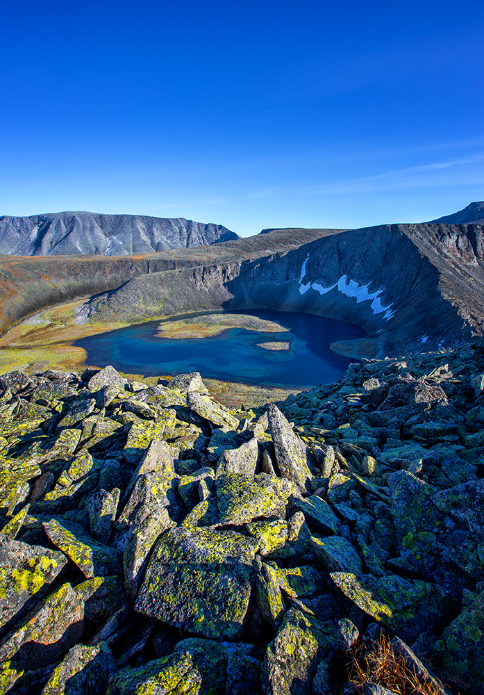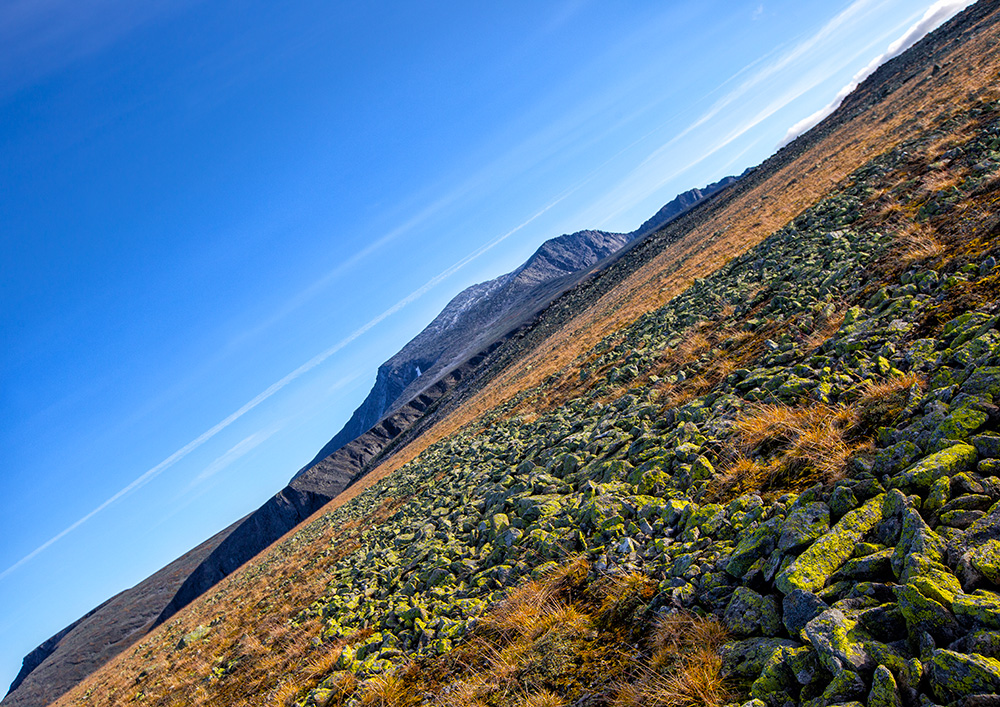 Путь от вертолетной площадке к озеру - по курумнику, но без подъема.